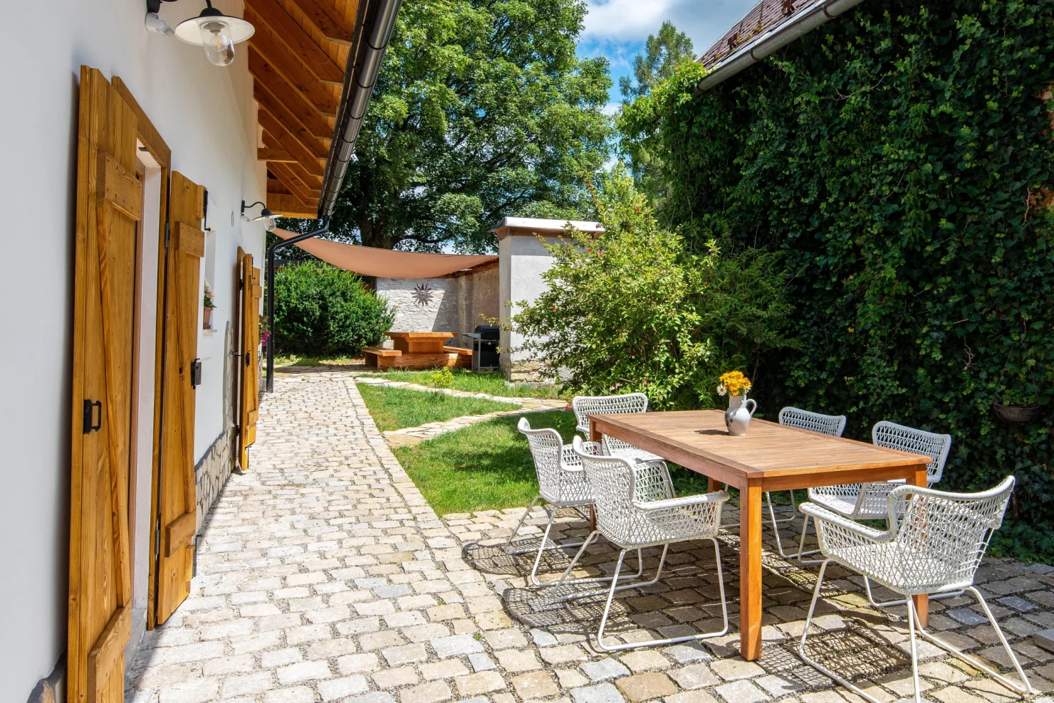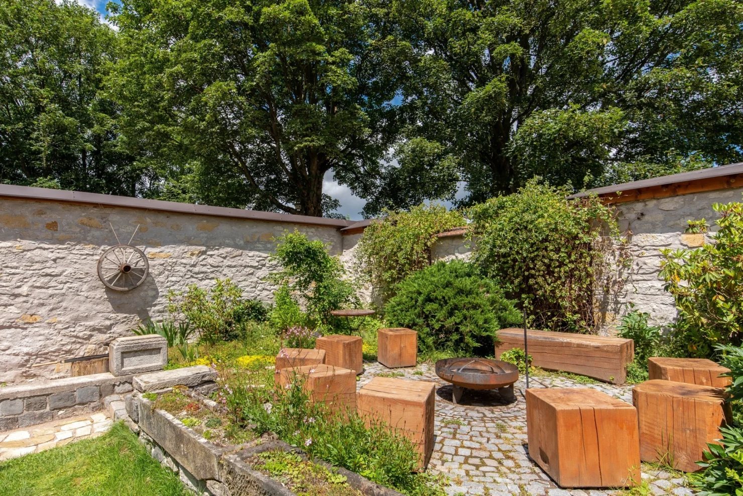Naleznete zde terasu pro odpočinek, velkorysé ohniště s posezením z masivních dřevěných kostek. V rozlehlé zelené zahradě si přijdou na své zejména děti. Máme pro ně připravené dětské hřiště s houpačkami, trampolínu, domeček z vrbového proutí, ale také ovocné stromy a keře, které nabízí spoustu zdravého mlsání.